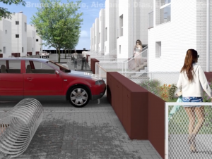 El proyecto está fuertemente comprometido con la reorganización del tejido construido de la ladera, ya sea a través de la fragmentación volumétrica propuesta de los edificios o mediante la disposición de pequeñas plazas que albergarán jardines urbanos individuales, el suelo productivo de estas pequeñas plazas al promover la sostenibilidad ecológica de la vida. También actuará como un factor de socialización entre los residentes del área de Alvenaria.